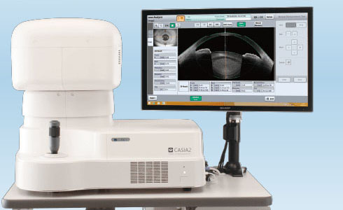 角膜から水晶体までを立体的に撮影し断層画像を得ることが可能です。有水晶体眼内レンズ(ICL)のサイズ選択や術後の管理を正確に行えます。また不正乱視の検出が可能で、多焦点レンズの適応の判断に有用です。